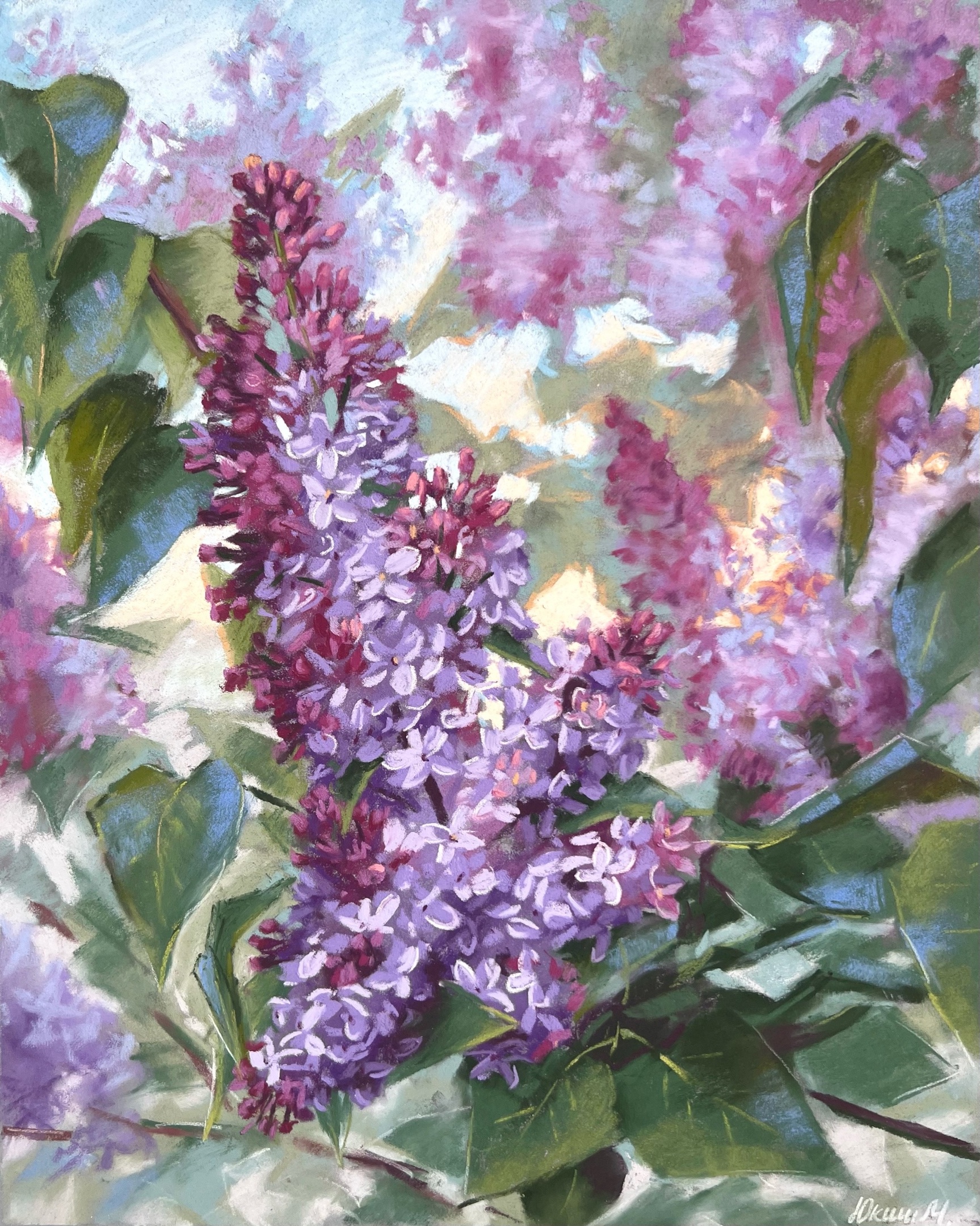 Сирень. Изящная веточка сирени с полностью открытыми и еще не распустившимися соцветиями. Разберем, как реалистично и убедительно передать образ цветка без копирования деталей, как нарисовать массу листвы, как создать глубину в работе.